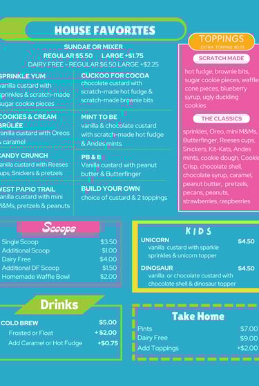 Dairy-free and allergen-friendly options available! Enjoy our vanilla custard alternative with a variety of dairy-free topping choices.