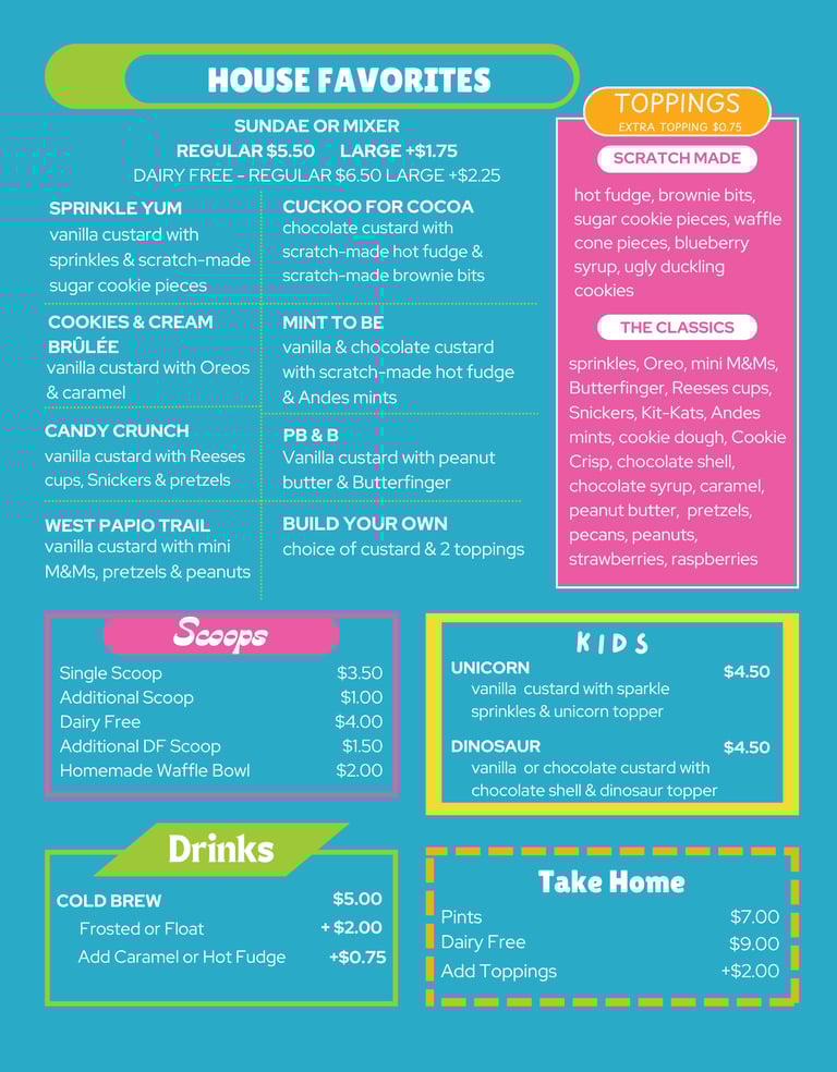 Premium vanilla and chocolate custard are just the beginning. From there, you can customize your treat with nearly 30 toppings ranging from classic candies to scratch-made specialties. With almost 1,400 possible flavor combinations, every visit can be a brand-new experience. The only challenge? Making a decision!